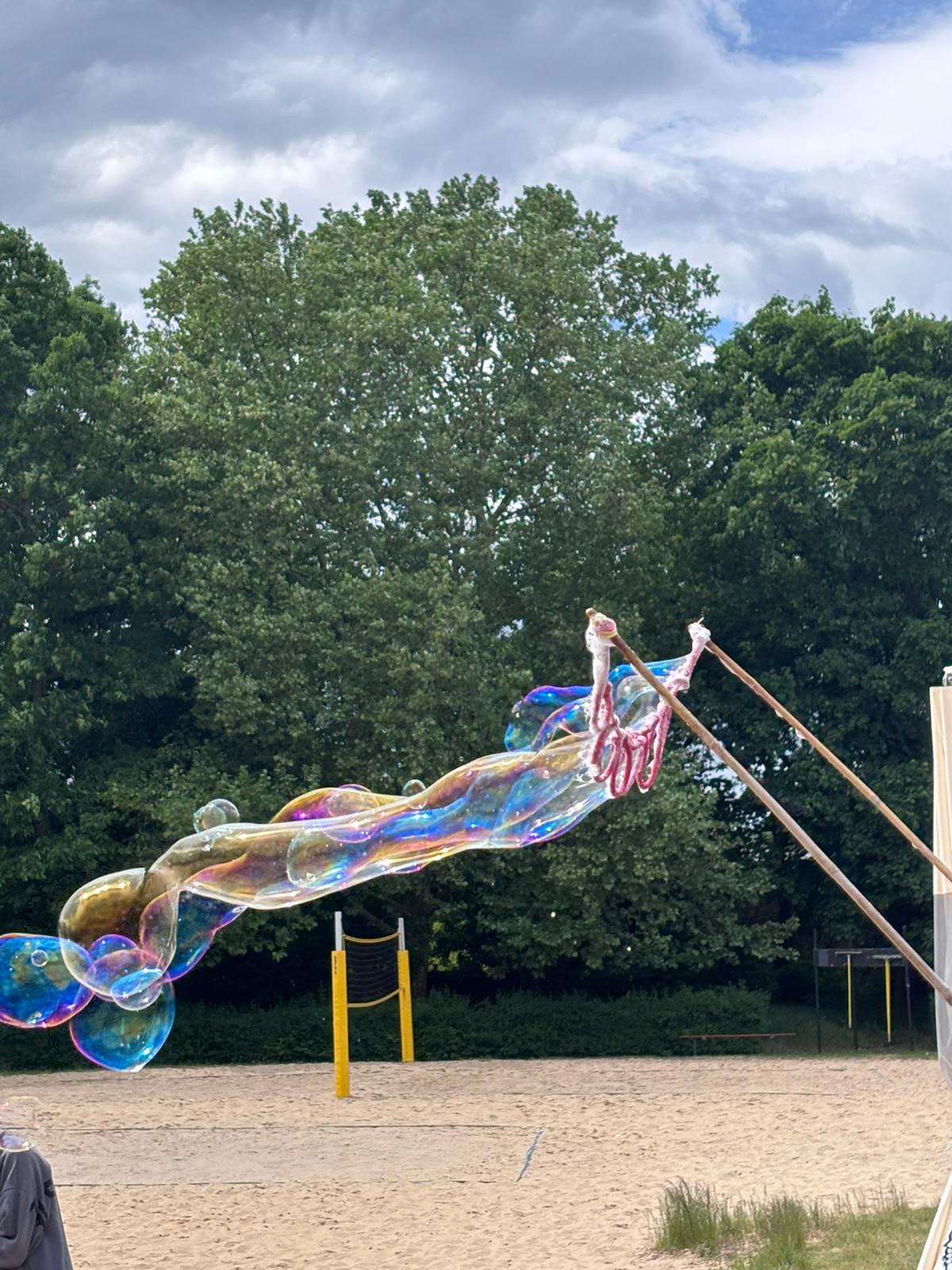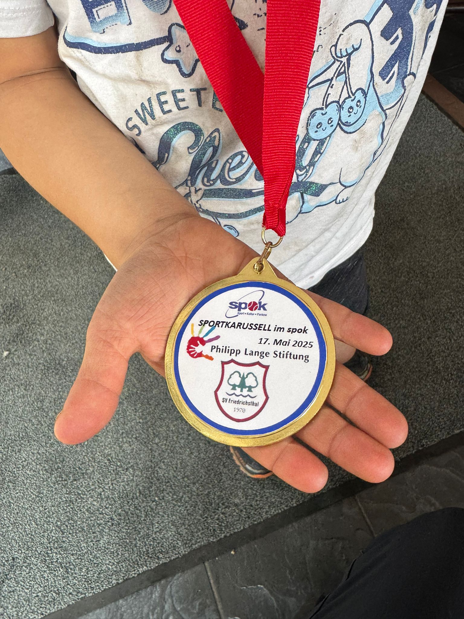 Das 9. Sportkarussells der Philipp Lange Stiftung am 17.05.2025 auf dem Gelände der Spok Sport und Kultur GmbH stand dieses Mal ganz im Zeichen von Fußball. Mit 60 Bällen, diversen Trainingsutensilien sowie 6 grandiosen Trainern hat uns dabei der SV Friedrichsthal 1970 tatkräftig unterstützt und den Tag für 37 Kinder von drei Trägern zu einem unvergesslichen Erlebnis gemacht. An unterschiedlichen Stationen konnten die Kinder sich u.a. beim Fußballtennis austoben und verschiedene Fußballtechniken erlernen. Nach einer Stärkung am Grillbuffett, war das Highlight des Tages ein 4 x 4 m großes Fußballdart. Wer eine Pause brauchte, konnte an der Kreativstation T-Shirts und Baseballcaps selber gestalten. Wir bedanken uns ganz herzlich bei allen Beteiligten, vor allem aber beim Team des SV Friedrichsthal 1970!